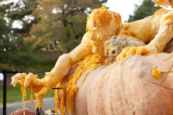 Carving master Ray Villafane created the largest Halloween pumpkin sculptures in the world. They’ll all be displayed through Halloween at the New York Botanical Garden.